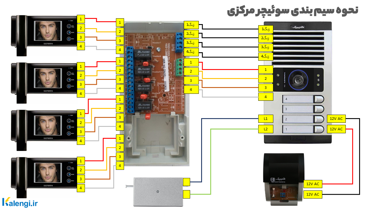 در ساختمان های مسکونی یا اداری که دارای دو درب مجزا هستند شما می توانید از دو پنل مجزا جلوی درب استفاده کنید و با یک مانیتور در واحد خود تصویر هر دو پنل را ببینید و درب را باز کنید اگر ایفون تصویری آلدو خانه شما دارای یک ورودی است می توانید از سوئیچر استفاده نمایید که وظیفه دارد دو پنل را به یک مانیتور تصویری متصل نماید. با استفاده از سوئیچر آلدو تمامی سیم ها به سوئیچر می روند و در نهایت به صورت یک رشته سیم به مانیتور متصل می شوند البته در ساختمان هایی با تعداد واحد بالا حتی اگر مانیتور شما خروجی اضافه داشته باشد می توان از سوئیچر استفاده کرد تا کیفیت انتقال صدا و تصویر بالا برود. در استفاده از سوئیچرها باید به این نکته توجه کرد که برای هر برندی وشرکت آلدو از سوئیچر مخصوص استفاده شود.