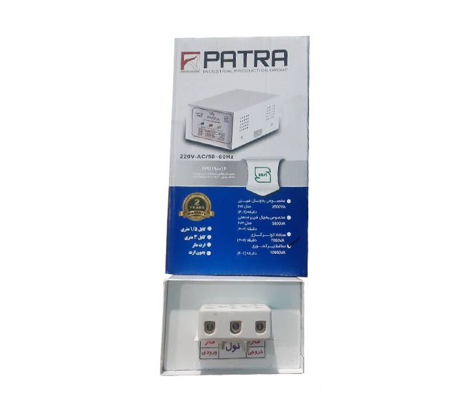 این محصول محافظ کنتور پاترا بوده و دارای یک ترمینال ورودی و یک ترمینال خروجی می باشد. ترمینال ورودی جهت اتصال این محصول به برق شهری می باشد. سیم برق اصلی خانه به‌ جای اینکه به پریز کنتور برق متصل شود. به ترمینال برق خروجی محافظ پشت کنتور آنالوگ وصل می گردد. این محافظ بدون کابل می باشد. ولتاژ کاری بین 170 ولت تا 255 ولت می باشد. حداکثر توان خروجی این محافظ پشت کنتور 6500VA و حداکثر جریان خروجی آن 30 آمپر می باشد. این محافظ کنتور ترمینالی پاترا مناسب برای تمامی دستگاههای برقی مورد استفاده در خانه و محل کار شما می باشد. به شرطی که مجموع مصرف دستگاههای متصل به این محافظ برق از 30 آمپر بیشتر نباشد.